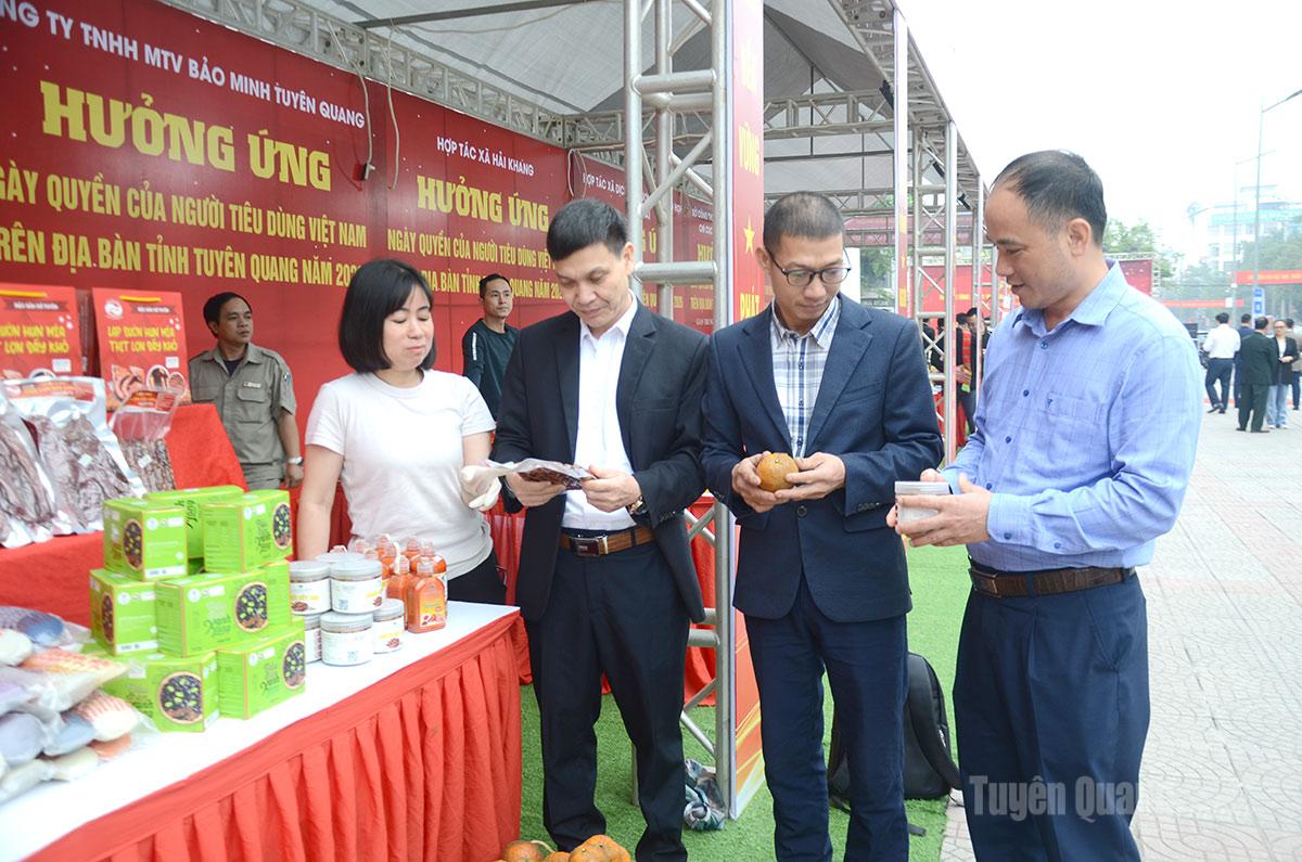 Các đại biểu tham quan gian hàng các đơn vị hưởng ứng lễ phát động Ngày Quyền của Người tiêu dùng Việt Nam (15-3).